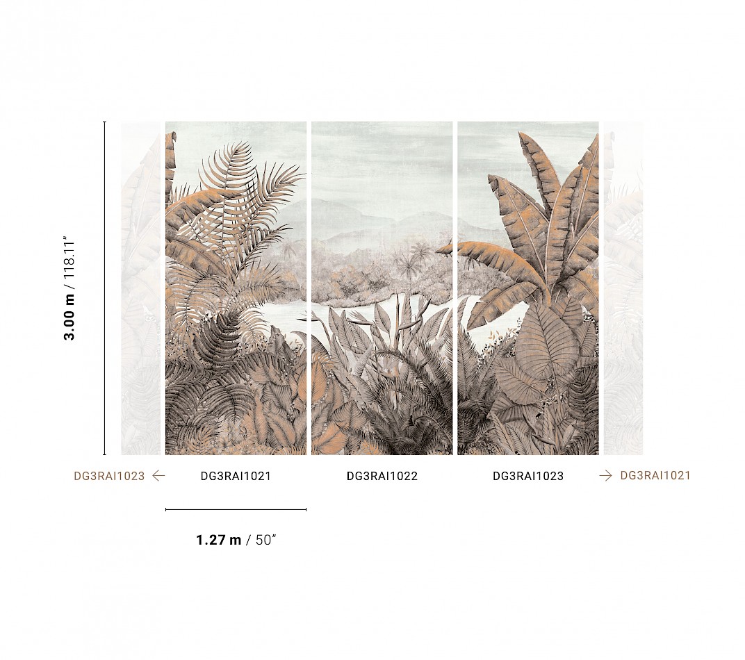 Vlies-Wandbilder mit Tropenwald- und Palmenmotiv. Das Innenfoto dient nur zur Illustration. Kombinierbar mit den Fototapeten DG33RAI1021 und DG3RAI1023 für größere Breite - siehe Foto.