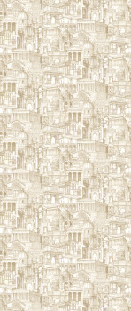 Beige Vlies-Wandbilder, historische Häuser. Das Innenfoto dient nur zur Illustration. Die Tapete hat ein durchgehendes Muster, für eine größere Breite müssen Sie nur ein weiteres Stück kaufen - siehe Foto.