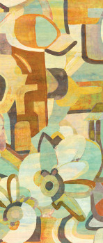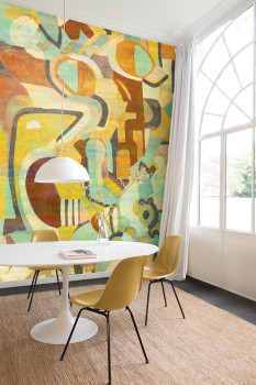 Grafische Vlies-Fototapete, Braun-, Orange-, Grün- und Gelbtöne. Das Innenfoto dient nur zur Illustration. Kombinierbar mit den Fototapeten DG3WAR1031 und DG3WAR1032 für größere Breite - siehe Foto.