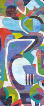 Grafische Vlies-Fototapete, Blau-, Grün-, Rosa-, Rottöne. Das Innenfoto dient nur zur Illustration. Kombinierbar mit den Fototapeten DG3WAR1041 und DG3WAR1043 für größere Breite - siehe Foto.