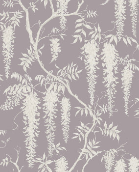 Lila Vliestapete, Motiv blühender Glyzinien. Wisteria Trials ist eine elegante Blumentapete mit zarten Glyzinienzweigen und Blumenblüten. Dieses elegante Design ist in den Farben Entenei, Mauve oder sanftes Grau erhältlich und eignet sich perfekt zur Ergänzung Ihres Zuhauses. Dieses atemberaubende Design ist auf mattem Papier gedruckt, hat eine luxuriöse Oberfläche und lässt sich leicht aufkleben.
