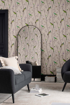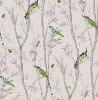 Glatte grau-beige Vliestapete, Motiv aus Ästen mit Vögeln und Schmetterlingen. Verleihen Sie Ihrem Zuhause mit diesem wunderschönen Tapetenmuster einen Hauch von Natur. Chinoiserie Bird Trail ist ein klassisches Muster mit Vögeln und Schmetterlingen. Die hinzugefügten Farben erwecken diese Tapete zum Leben und verleihen ihr gleichzeitig eine moderne Note. Dieses auf mattem Papier gedruckte Design hat eine luxuriöse Oberfläche und lässt sich leicht an die Wand kleben, sodass diese Tapete einfach anzubringen ist.