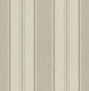 Glatte grau-beige Vliestapete mit Streifen. Stoffeffekt. Verleihen Sie Ihrem Zuhause einen klassischen Hauch von Eleganz mit der Country Stripe-Tapete. Dieses klassische und dennoch moderne Streifendesign bringt Muster und Farbe an Ihre Wände. Dieses auf mattem Papier gedruckte Design hat eine luxuriöse Oberfläche und haftet leicht an der Wand.