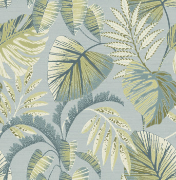 Glatte Vliestapete in Graugrün/Entenei, tropisches Blattdesign in Grüntönen. Verleihen Sie Ihrem Interieur mit der Tapete Jungle Leaves einen tropischen Touch. In diesem trendigen tropischen Tapetendesign sind eine Reihe tropischer Blätter miteinander verflochten. Erhältlich in drei Farbpaletten: Orange, Entenei und Marineblau. Dieses auf mattem Papier gedruckte Design hat eine luxuriöse Oberfläche und haftet leicht an der Wand.