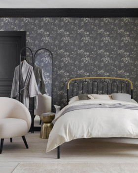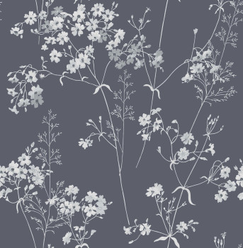 Glatte dunkelblaue Vliestapete mit floralen Zweigmotiven. Leaf ist ein perfektes florales Tapetendesign. Zarte Blumen und Blätter vereinen sich zu einer wunderschönen Tapete in den Farbtönen Entenei, Rosa und Grau. Dieses schöne Design ist auf mattem Papier gedruckt, hat eine schöne Oberfläche und lässt sich leicht an die Wand kleben.