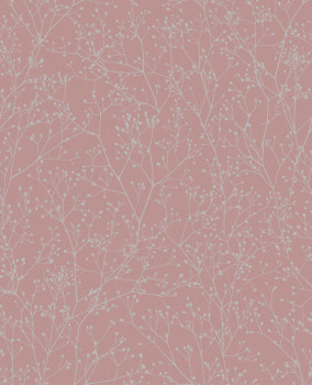 Rosa Vliestapete, Motiv aus kleinen Zweigen in der Farbe Roségold.