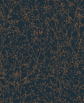 Dunkelblaue Vliestapete, Motiv aus winzigen Kupferzweigen.
