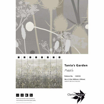 Atemberaubende Fototapete Tanias Garten erinnert an eine Wiese voller Wildblumen, die in Mondlicht getaucht ist. Der Entwurf wurde von einem von Clarissas Lieblingsorten inspiriert – dem magischen Garten ihrer Freundin und renommierten Gartendesignerin Tania Compton. Ein üppiges Gewirr aus Gräsern, Dillsamenköpfen und Eisenkraut fängt die Essenz wilder und natürlicher Schönheit ein.