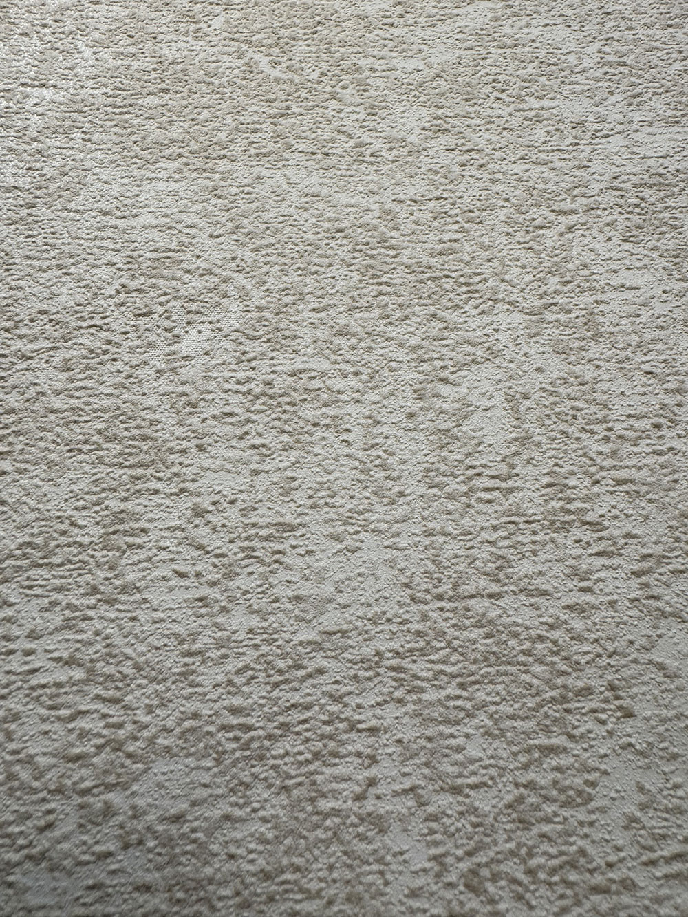 Beige Vliestapete mit Vinyloberfläche, Putzimitat.