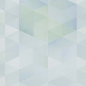 Vliestapete mit feiner Sandstruktur. Geometrisches Muster, das einem Kaleidoskop in Blau- und Grüntönen ähnelt.
