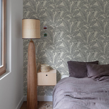 Schwarz-weiße Vliestapete, Blätter, A66402, Vavex 2025