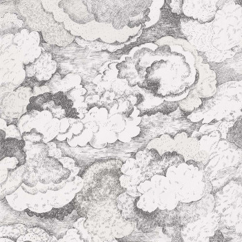 Vliestapete. Wolken in grauen, schwarzen, cremefarbenen und grünen Halbglanztönen.