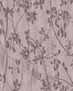 Sanft geprägte violette Vliestapete mit Vinyloberfläche, Motive von Zweigen und Blättern.