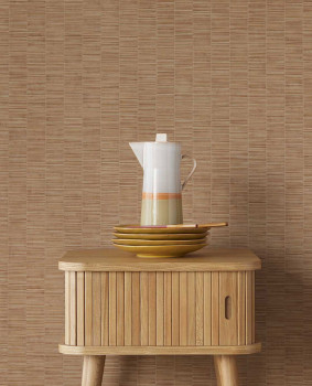 Braune Vliestapete mit Vinyloberfläche, Imitation von gestepptem feinem Bambus.