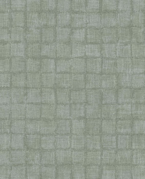 Grüne halbglänzende Vliestapete, rustikale quadratische Stoffimitation.