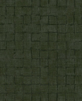 Dunkelgrüne halbglänzende Vliestapete, rustikale quadratische Stoffimitation. Das Innenfoto dient nur zur Veranschaulichung - verschiedene Farbe