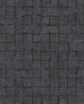 Graue halbglänzende Vliestapete, rustikale quadratische Stoffimitation.