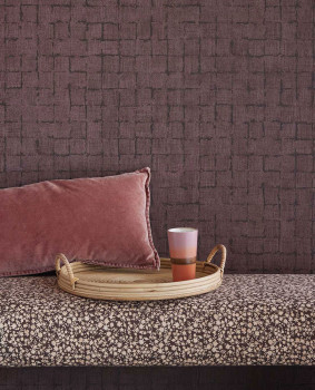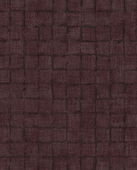 Weinrote halbglänzende Vliestapete, rustikale quadratische Stoffimitation.