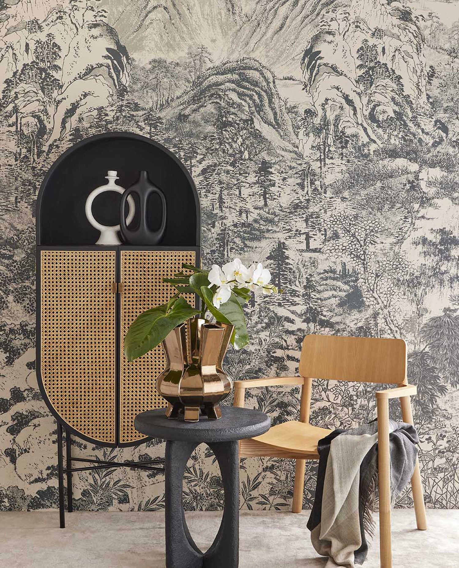 Tapeten mit einem Muster aus ruhigen Silhouetten tropischer Zweige und exotischer Blätter, die in einen Schleier aus gefiltertem Licht getaucht sind, die natürliche Textur von zart geflochtenem Bambus oder ein kräftiges Blumenmotiv auf grober Leinwand, ein rustikales Muster aus strukturierten Blöcken mit einem Hauch von Glanz, das sind Tapeten wird eine Augenweide an Ihren Wänden sein.