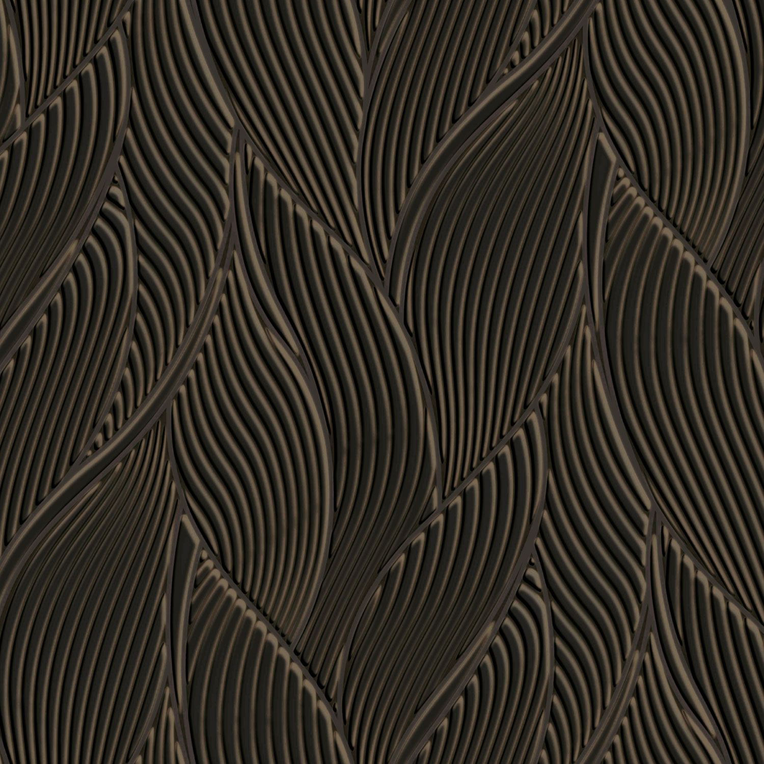Luxuriöse Vliestapete mit Vinyloberfläche, braune halbglänzende Metallic-Blätter.