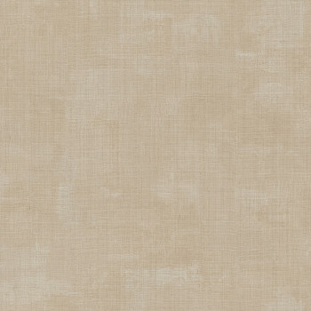 Luxuriöse Vliestapete mit Vinyloberfläche, braun-gold halbglänzend, stellenweise silbern, geprägte gröbere Gewebestruktur.