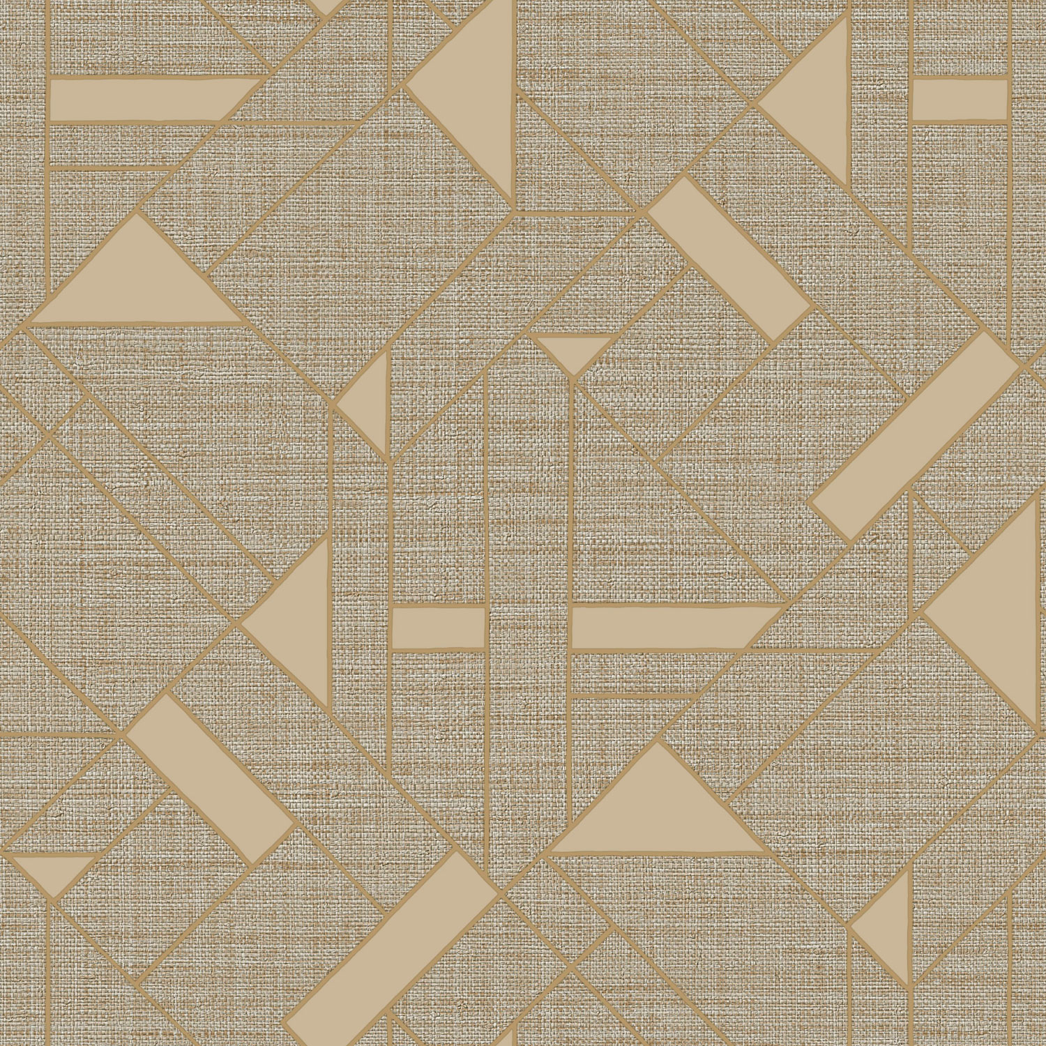 Luxuriöse Vliestapete mit Vinyloberfläche, geometrische Muster, Gewebestruktur, grau-braun halbglänzend.