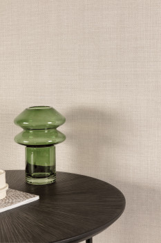 Vliestapete, Stoffstruktur, Sand-/Graubeigetöne.