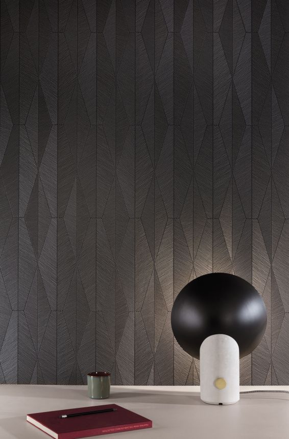 Braune Vliestapete mit geprägtem geometrischem Muster.