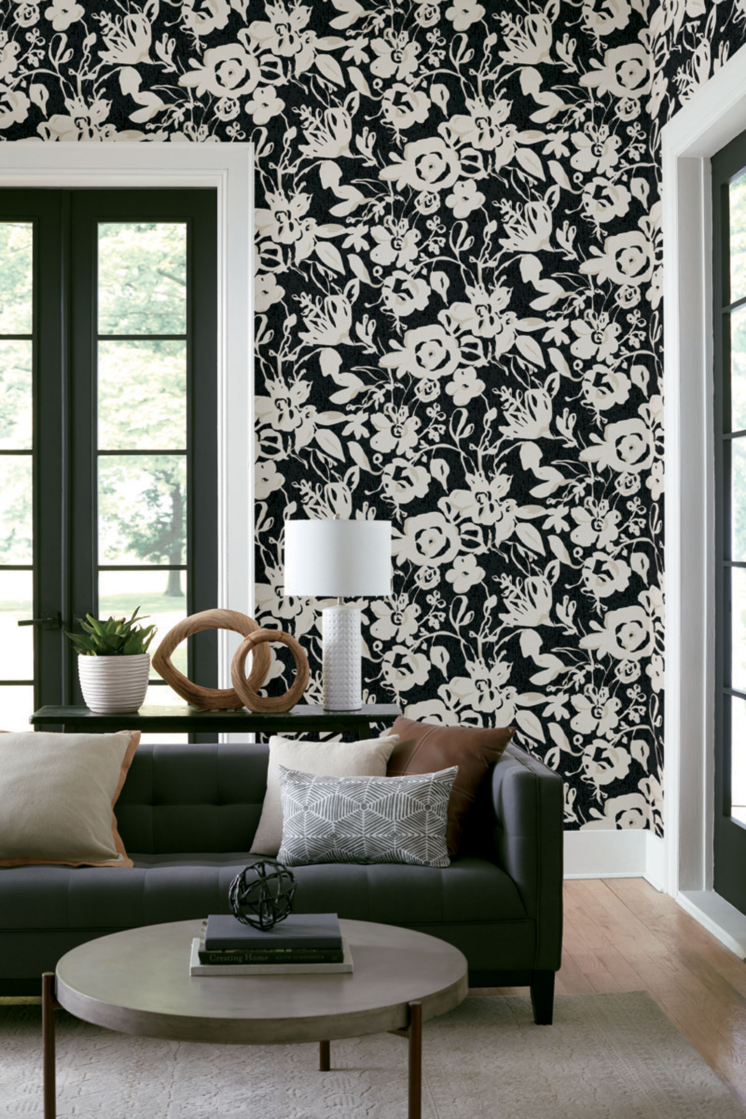 Schwarze Vliestapete mit Blumenmuster, BL1733, Blooms Second Edition Resource Library, York