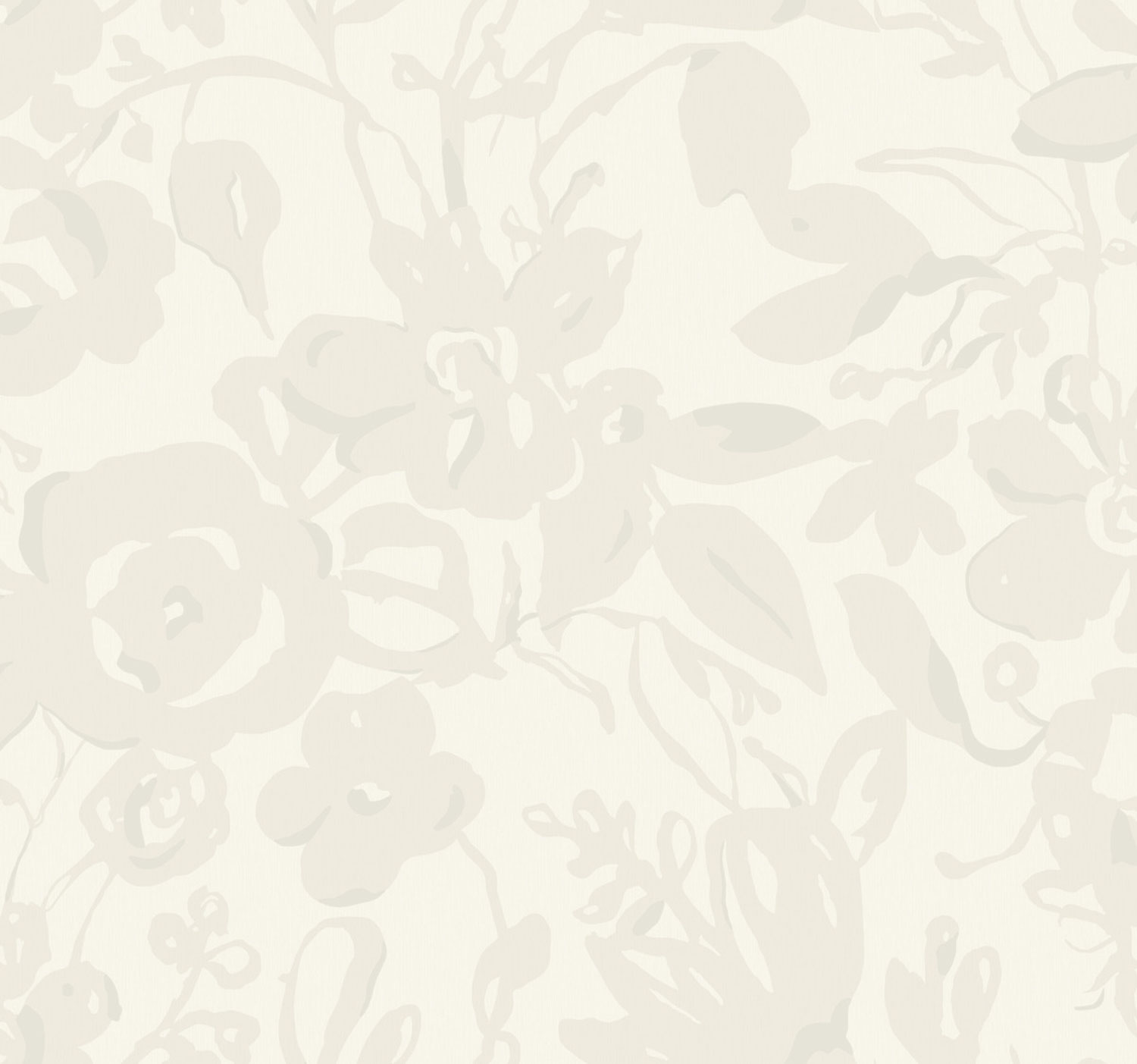 Vliestapete - Perlmuttblumen, handgemalter Effekt, weißer Hintergrund.