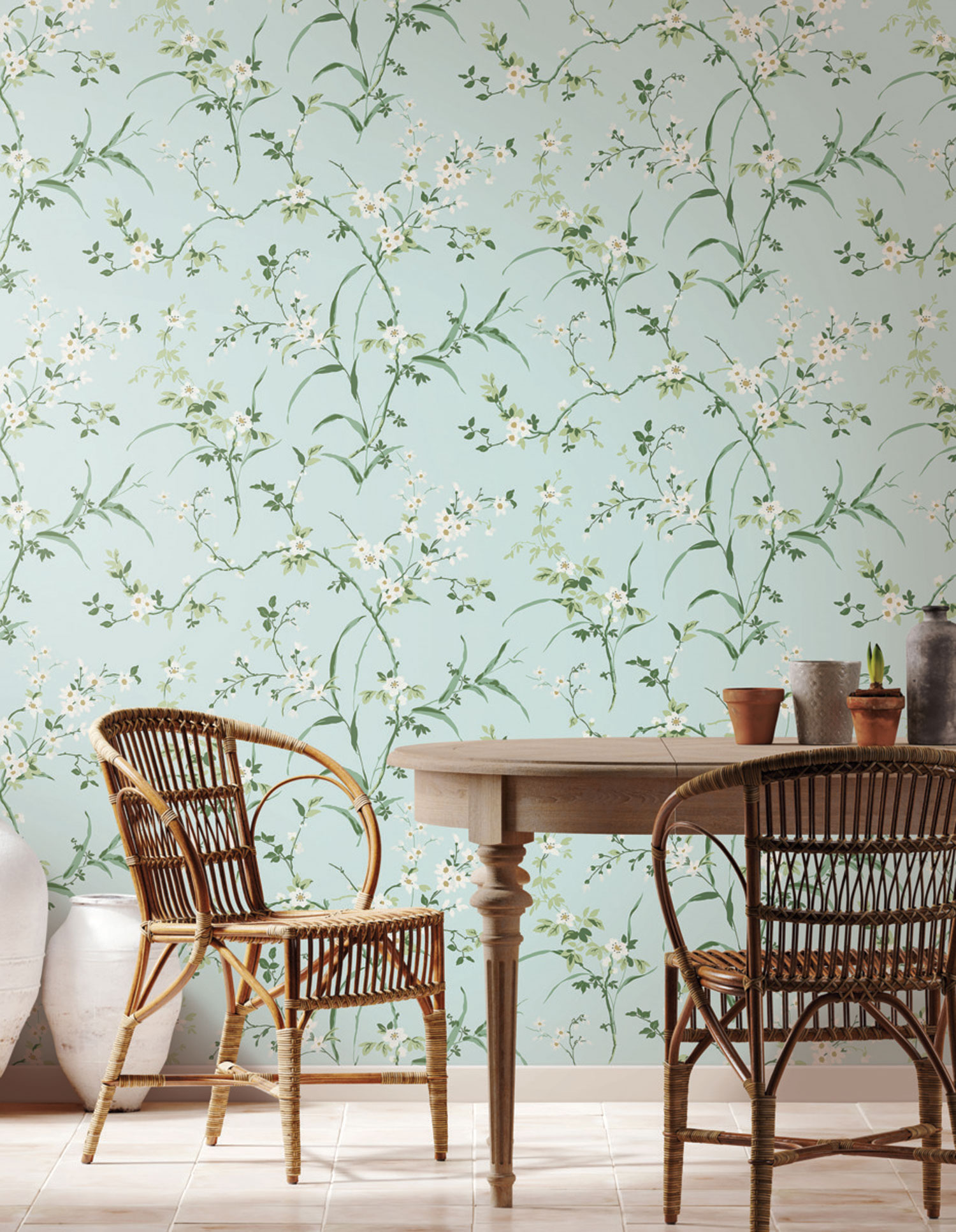 Hellblaue Vliestapete, blühende Zweige, BL1742, Blooms Second Edition Resource Library, York