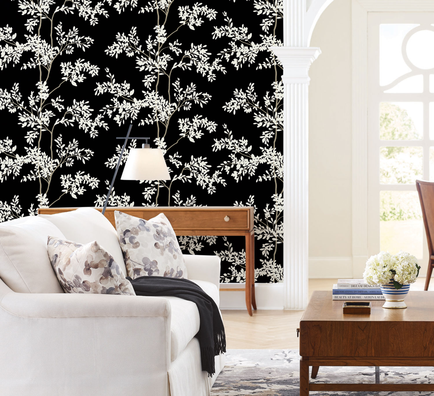 Schwarz-weiße Vliestapete mit Zweigen, BL1804, Blooms Second Edition Resource Library, York