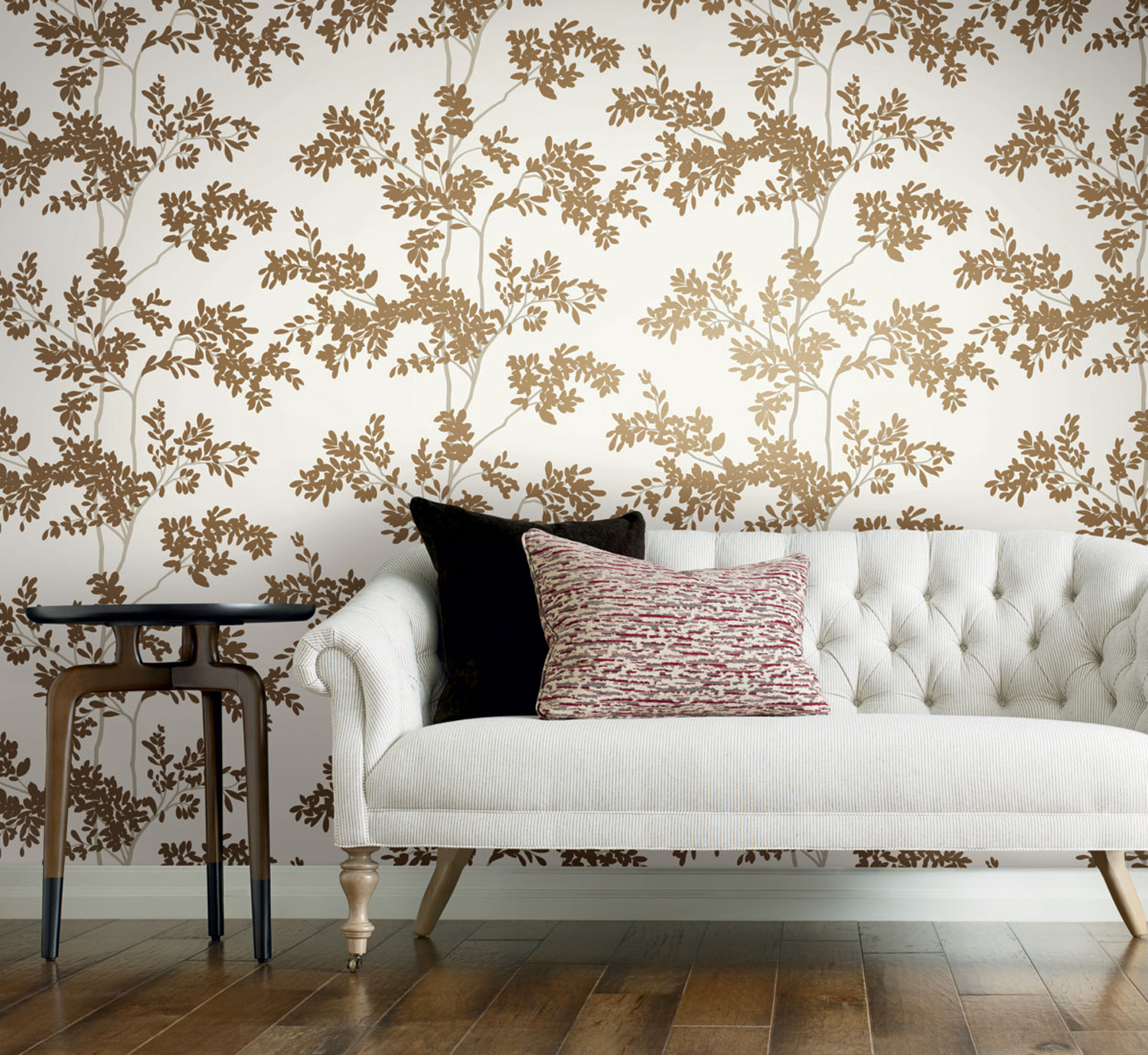 Weiß-goldene Vliestapete mit Zweigen, BL1806, Blooms Second Edition Resource Library, York