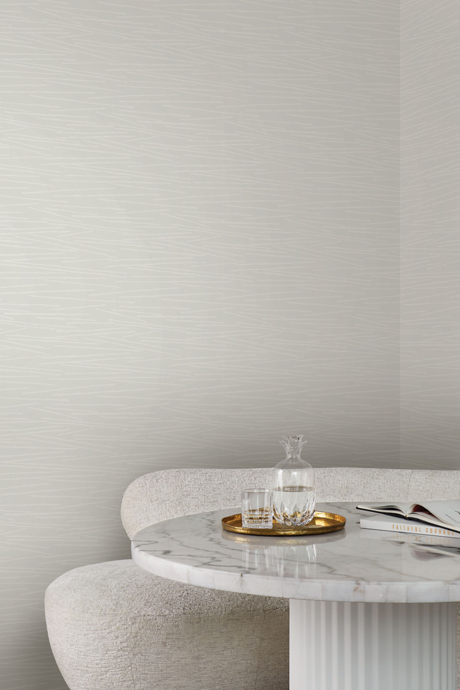 Hellgraue Vliestapete, unregelmäßige, weiße, geprägte Linien.