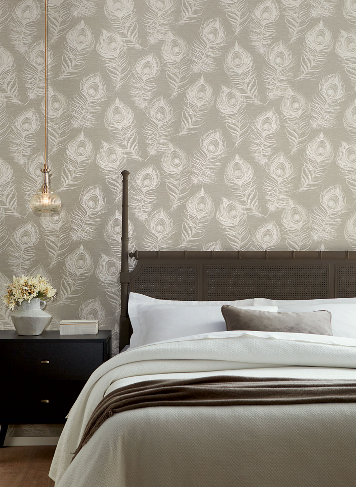 Graue Vliestapete mit Pfauenfedern, EV3941, Candice Olson Casual Elegance, York