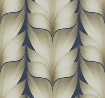 Effektvolle geometrische Vliestapete in Dunkelblau- und Beigetönen.