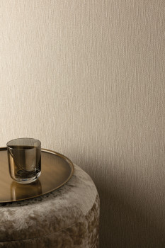 Seidenglänzende, strukturierte braun-beige Vliestapete mit Vinyloberfläche.