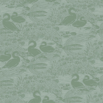 Grüne Vliestapete, Natur, Schwäne, 118472, Laura Ashley 3