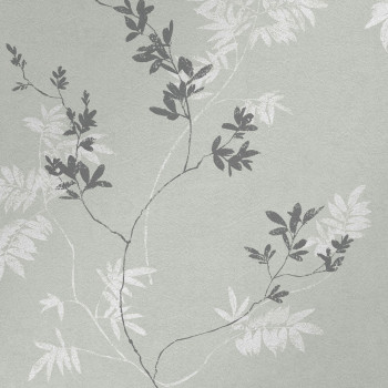 Halbglänzende Vliestapete, Motive aus Zweigen und Blättern in Grüntönen / Mineral Green.