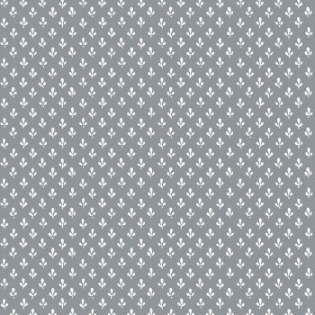 Grauweiße Vliestapete, Motiv aus kleinen Blättern.