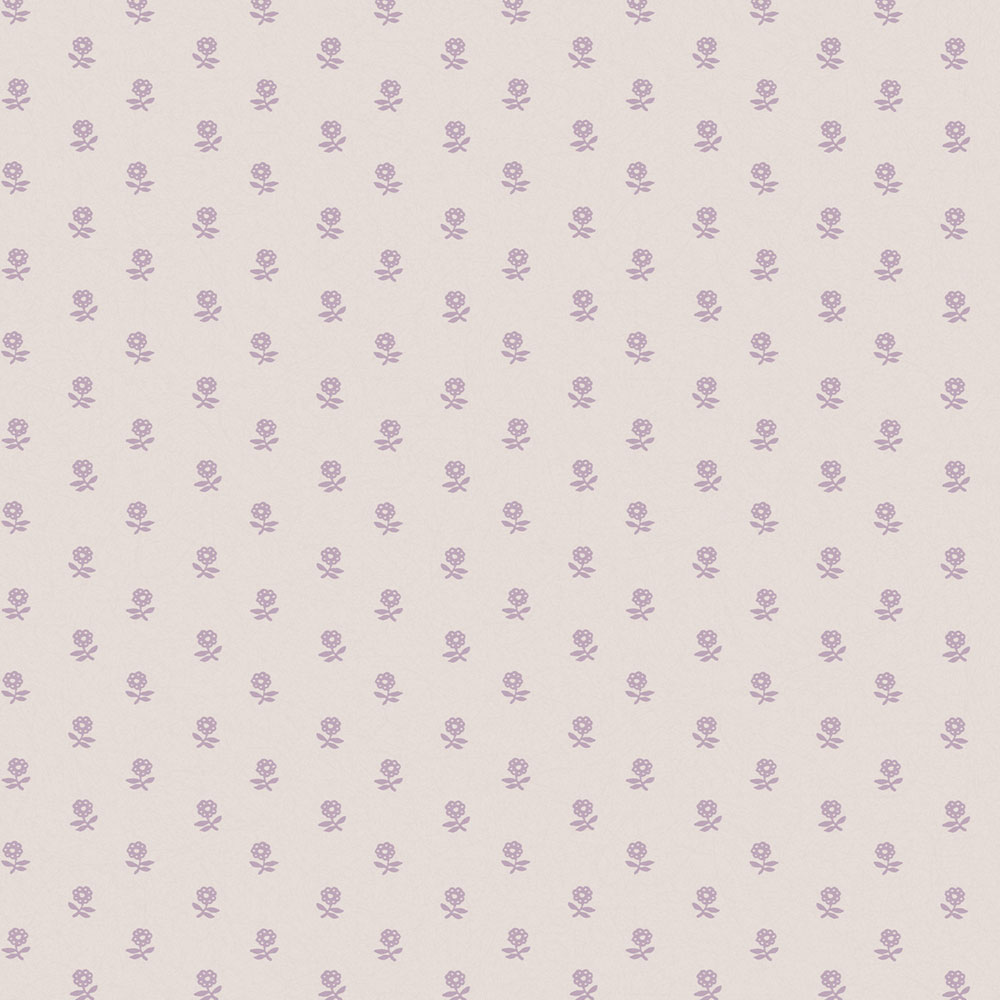 Lavendelfarbene Vliestapete, kleines florales Muster.