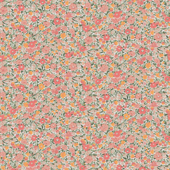 Glatte Vliestapete, Blumenmotiv in Rosa-, Beige-, Ocker- und Grüntönen.