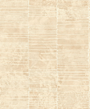 Luxuriöse Vliestapete in Beige mit geprägtem, cremefarbenem, geometrischem Muster auf dem Hintergrund, das Stuckputz imitiert.