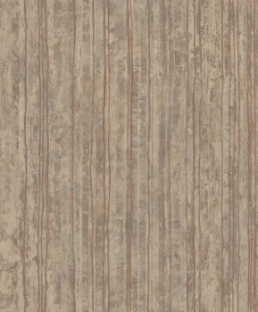 Luxuriöse bronzefarbene Vliestapete mit geprägten rosa Streifen auf einem Hintergrund, der Stuckputz imitiert.