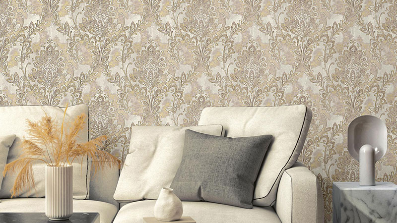 Entdecken Sie gedämpfte Brauntöne, ergänzt durch vergoldete Akzente, moderne Grautöne mit zarten Silbereinlagen und natürliche Oliven, verziert mit Bronzemotiven. Diese Tapetenfarben sind nicht nur ästhetisch atemberaubend, sondern erzeugen auch einen taktilen Eindruck von Luxus, der jeden Blick in Poesie verwandelt.
