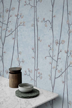 Vliestapete mit floralem Muster. Ausgeprägte Pinselstriche.