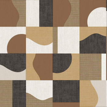 Luxuriöse geometrische Vliestapete mit Vinyloberfläche, Würfelmotiv mit Formen, Braun-, Beige- und Schwarztönen. Das Foto des Innenraums dient nur zur Veranschaulichung – verschiedene Farben.