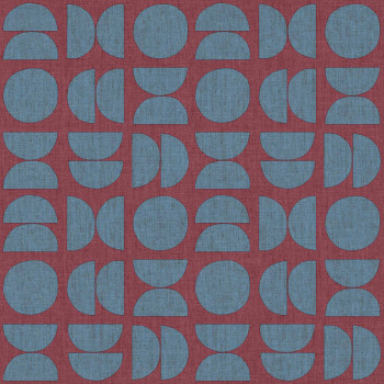 Luxuriöse geometrische Vliestapete mit Vinyloberfläche, Motiv aus Kugeln und Halbkugeln in Burgunder- und Blautönen. Das Foto des Innenraums dient nur zur Veranschaulichung – verschiedene Farben.
