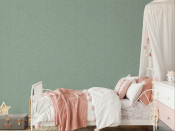 Luxuriöse Tapete mit Vliesträger und Vinyloberfläche in Grün mit feiner matter Stoffstruktur.