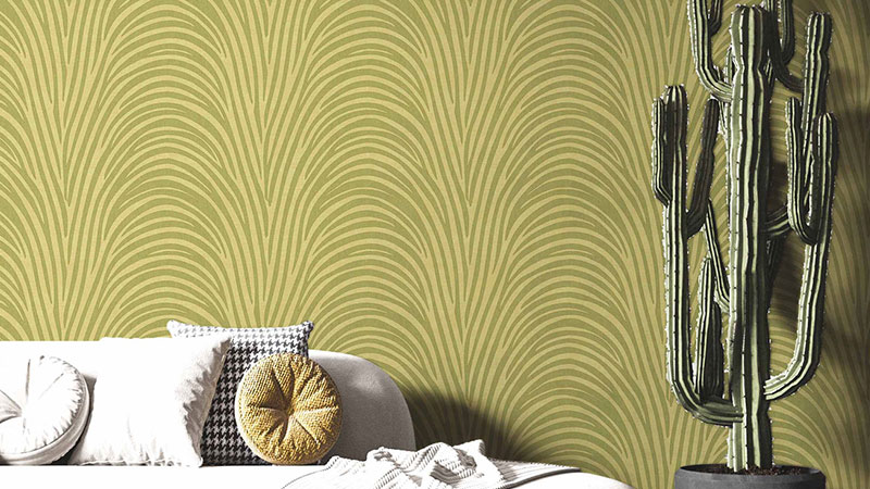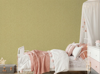 Luxuriöse Vliestapete mit Vinyloberfläche in gelber Farbe mit feiner matter Struktur.